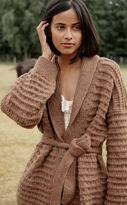 Пряжа свита в шнурок. Легкая, теплая. Хорошо держит резинку и отлично смотрится в узорах.
